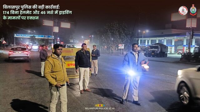 Bilaspur News:– बिलासपुर एसएसपी रजनेश सिंह के निर्देशन में यह अभियान जिले के सभी थाना क्षेत्रों के पूर्व निर्धारित स्थानों पर पुलिस बल लगा कर के कार्रवाई की गई । अभियान का मुख्य उद्देश्य बिना हेलमेट दोपहिया वाहन चलाने वाले और शराब के नशे में वाहन चलाने वाले चालकों पर सख्त कार्रवाई करना था।